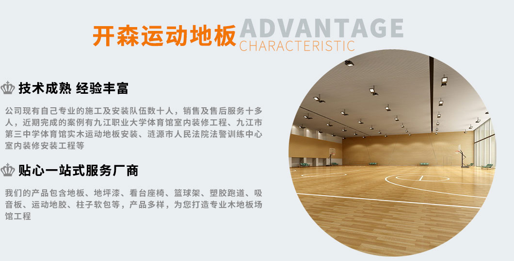 九江開森地板有限公司位于美麗的江西省九江市。地板原材料采自于吉林,黑龍江等長白山地區(qū)自家承包林場的優(yōu)質木料,主,輔龍骨采用美國進口花旗松為原料。開森地板擁有雄厚的科技和研發(fā)實力,匯集了一批優(yōu)異工程師和專業(yè)的安裝團隊,引進的進口地板安裝設備。本公司對外承攬大、中、小體育場館的運動木地板安裝工程。做到質量保證、價格合理。在行業(yè)內擁有較高的知名度,實力迎合市場!